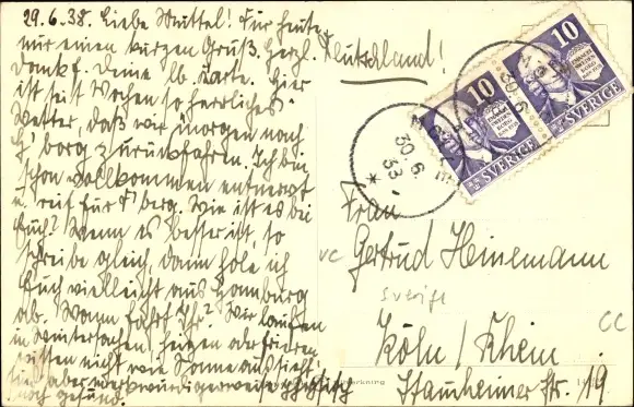 Zustand, siehe Scan, gelaufen, 1938 - ca 14 cm X 9 cm