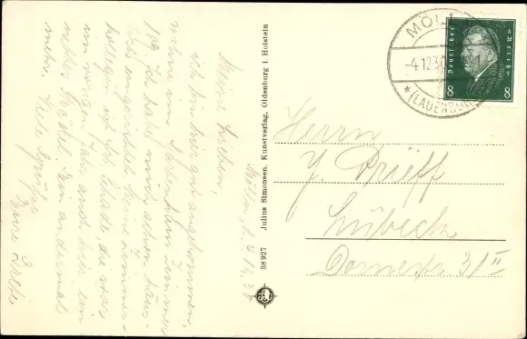 Zustand, siehe Scan, gelaufen, 1930 - ca 14 cm X 9 cm
