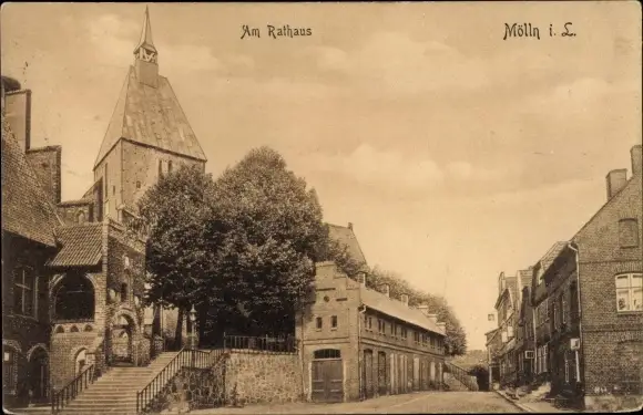 Ak Mölln in Lauenburg, Rathaus, Kirche, Treppe