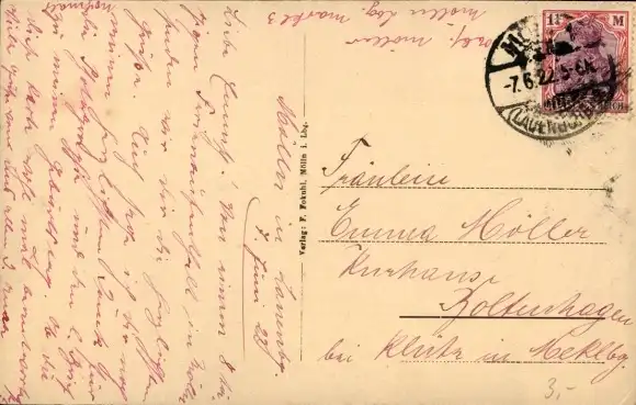 Zustand, siehe Scan, gelaufen, 1922 - ca 14 cm X 9 cm