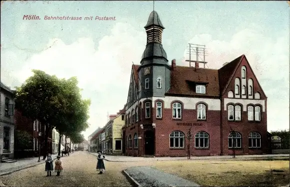 Ak Mölln in Schleswig Holstein, Bahnhofstraße mit Postamt