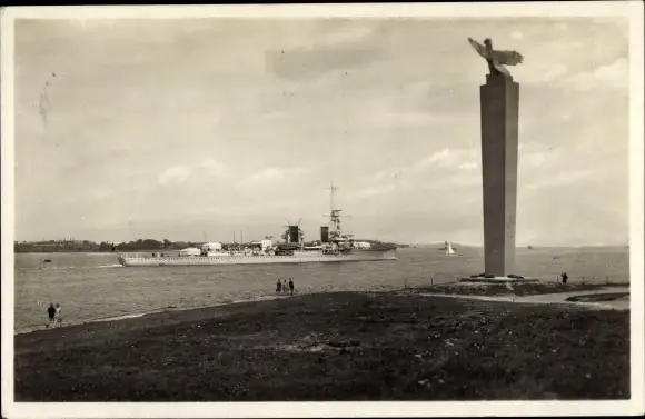 Ak Möltenort Heikendorf in Schleswig Holstein, U Boot Ehrenmal mit Kreuzer Königsberg, Kriegsschiff