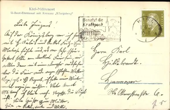 Zustand, siehe Scan, gelaufen, 1932 - ca 14 cm X 9 cm