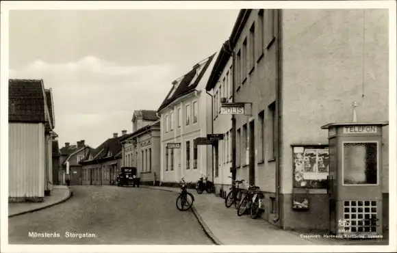 Ak Mönsterås Schweden, Storgatan, Polis, Telefonzelle