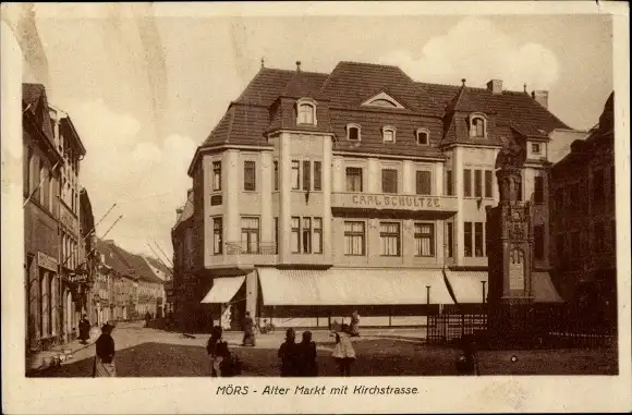 Ak Moers am Niederrhein, Alter Markt mit Kirchstraße, Geschäft Carl Schultze