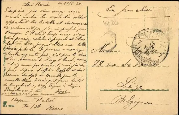 Zustand, siehe Scan, gelaufen, 1920 - ca 14 cm X 9 cm