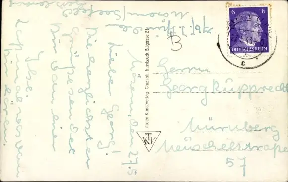 Zustand, siehe Scan, gelaufen, 1943 - ca 14 cm X 9 cm