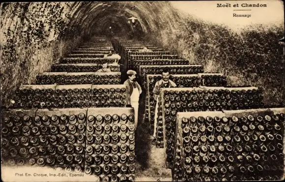 Ak Moet & Chandon, Champagne, Remuage, Weinflaschen