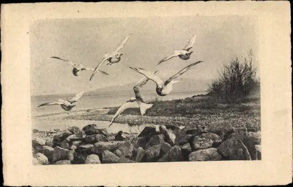 Ak Möwen im Flug, Seeufer