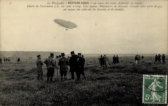 Ak Moisson Yvelines, 24 juin 1908, Dirigéable République, Französisches Luftschiff
