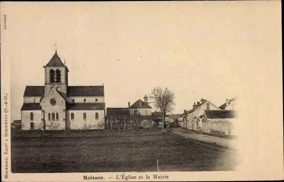 Ak Moisson sur Seine Yvelines, Kirche und Rathaus