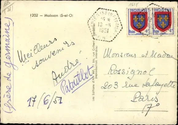 Ak Moisson sur Seine Yvelines, Une rue, Chien