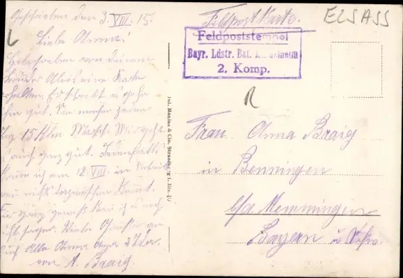 Zustand, siehe Scan, gelaufen, 1915 - ca 14 cm X 10 cm