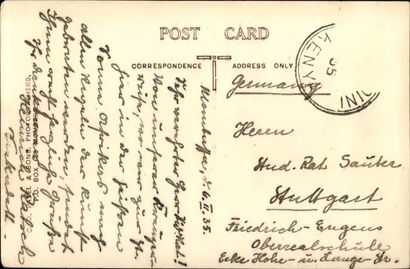 Zustand, siehe Scan, gelaufen, 1935 - ca 9 cm X 14 cm