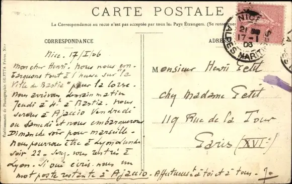 Zustand, siehe Scan, gelaufen, 1906 - ca 14 cm X 9 cm