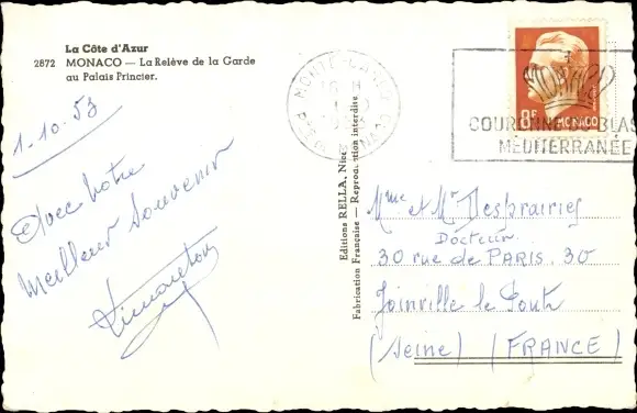 Zustand, siehe Scan, gelaufen, 1953 - ca 14 cm X 9 cm