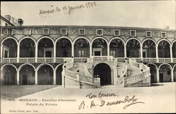 Ak Monaco, Escalier d'honneur, Palais du Prince, Prinzenpalast, Ehrentreppe