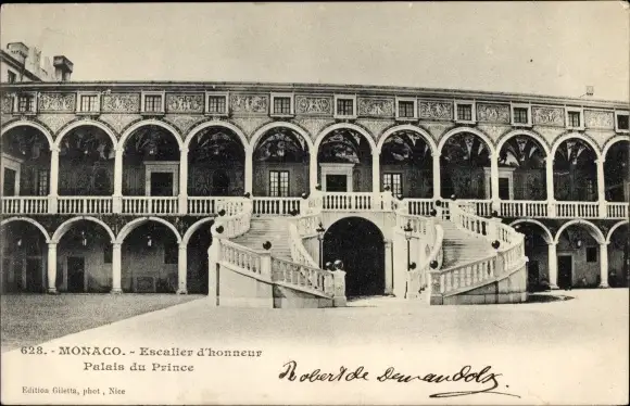 Ak Monaco, Escalier d'honneur, Palais du Prince, Prinzenpalast, Ehrentreppe