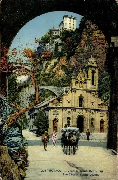 Ak Monaco, L'Eglise Sainte-Devote, Blick durch Bogen, Kutsche