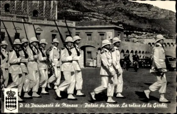 Ak Monaco, Le Palais du Prince, La releve de la Garde, Wappen