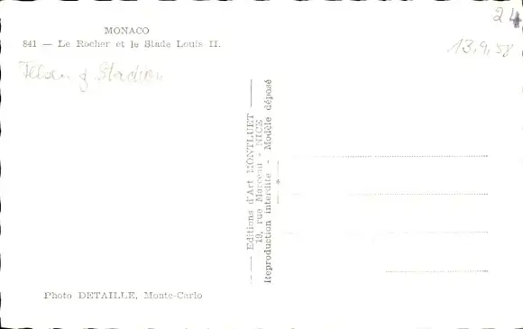 Ak Monaco, Le Rocher und Stade Louis II.