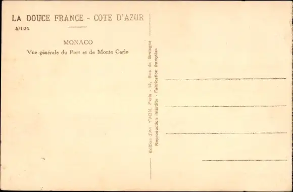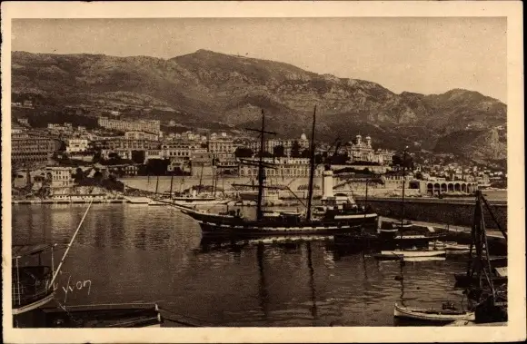 Ak Monaco, Vue generale du Port et le Monte Carlo