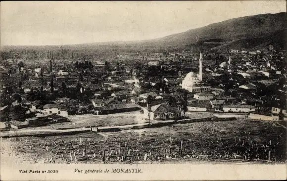 Ak Monastir Bitola Mazedonien, Totalansicht der Ortschaft, Moschee