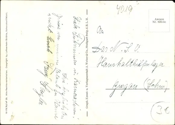 Ansichtskarte, Postkarte, Fliegeraufnahme, Luftbild, Luftaufnahme, Fliegerbild, Fliegerfoto