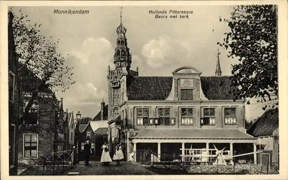 Ak Monnikendam Waterland Nordholland Niederlande, Börse mit Kirche