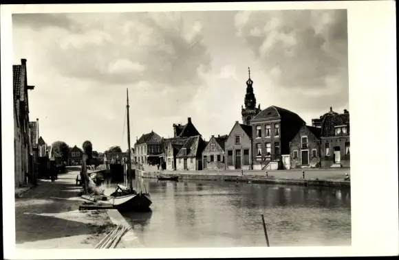Ak Monnikendam Waterland Nordholland Niederlande, Havengezicht