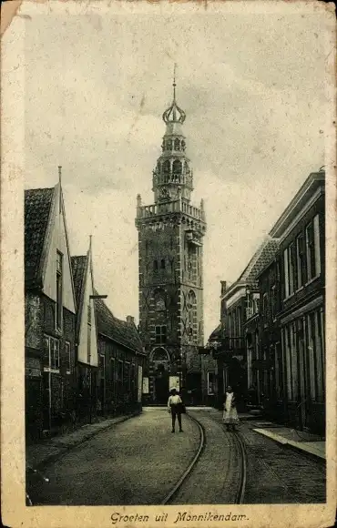 Ak Monnikendam Waterland Nordholland Niederlande, Teilansicht Kirche
