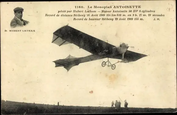 Ak Monoplan Antoinette pilote par Hubert Latham, Portrait
