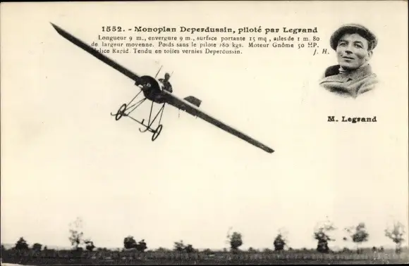 Ak Monoplan Deperdussin, pilote par Legrand, Flugpionier