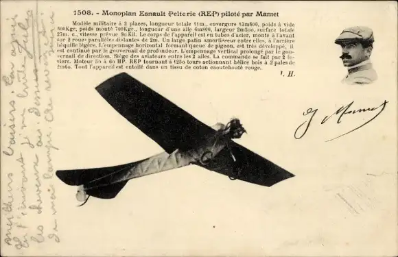 Ak Monoplan Esnault Pelterie, gesteuert von Mamet
