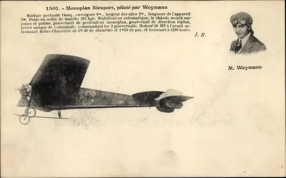 Ak Monoplan Nieuport, piloté par Weymann, Pilot, Flugpionier