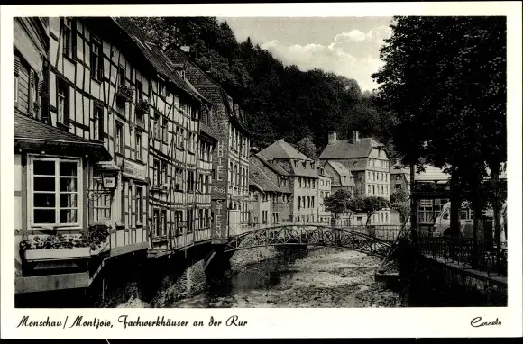 Ak Monschau Montjoie, Fachwerkhäuser an der Rur
