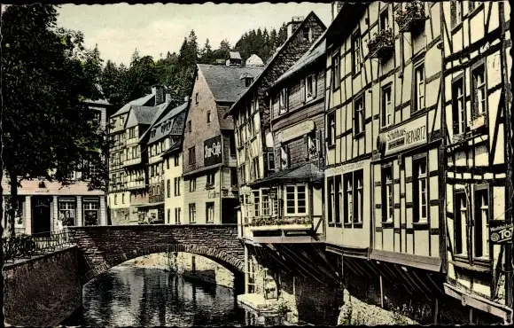 Ak Monschau Montjoie in der Eifel, Fachwerkhäuser an der Rur