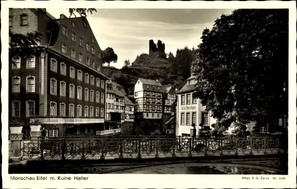 Ak Monschau Montjoie in der Eifel, Ortspartie, Ruine Haller