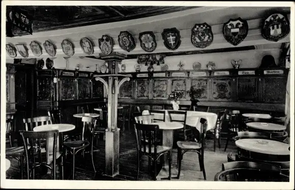 Ak Monschau Montjoie in der Eifel, Rur Café, Konditorei, Inneres, Wappen