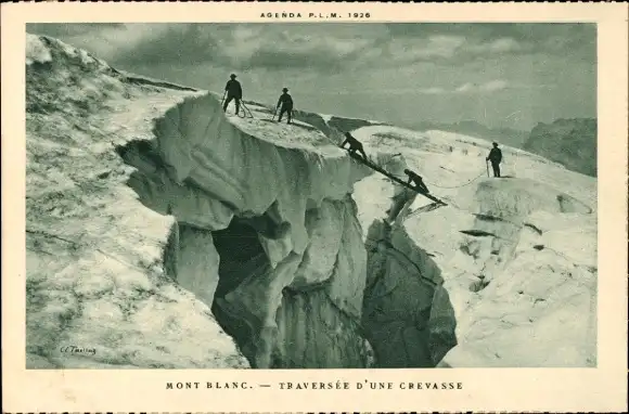 Ak Mont Blanc, Überquerung einer Gletscherspalte