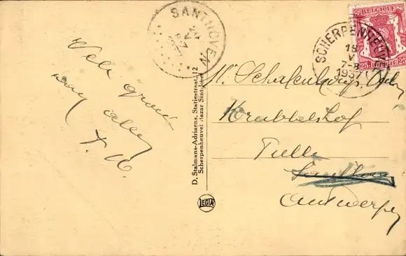 Zustand, siehe Scan, gelaufen, 1937 - ca 9 cm X 14 cm