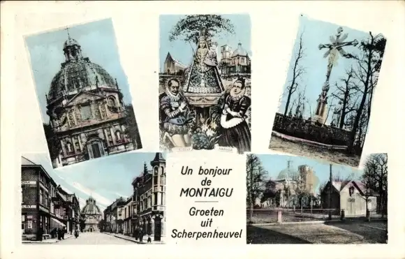 Ak Montaigu Scherpenheuvel Flämisch Brabant, Königspaar, Heilige, Denkmal, Straßenpartie