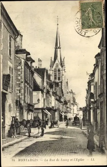Ak Montargis Loiret, Rue de Loing et l'Eglise