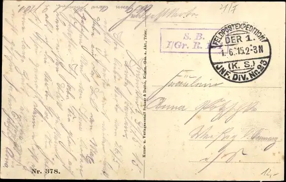 Zustand, siehe Scan, gelaufen, 1915 - ca 14 cm X 9 cm