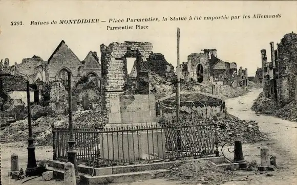 Ak Montdidier-Somme, Ruinen, Place Parmentier