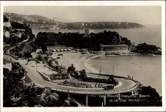 Ak Monte Carlo Monaco, Beach et le Cap Martin