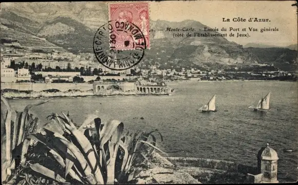 Ak Monte Carlo Monaco, Entree du Port et Vue generale