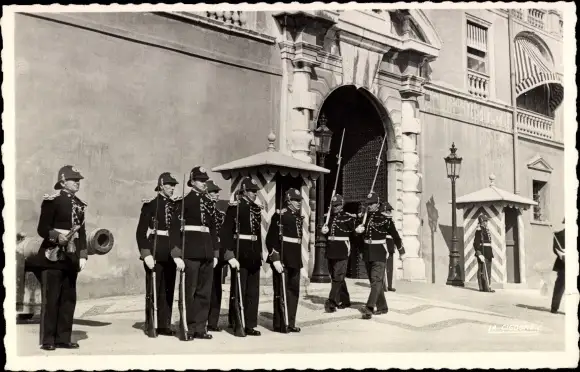 Ak Monte Carlo Monaco, La releve de la garde devant le Palais Princier
