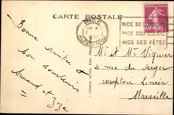 Zustand, siehe Scan, gelaufen, 1937 - ca 14 cm X 9 cm