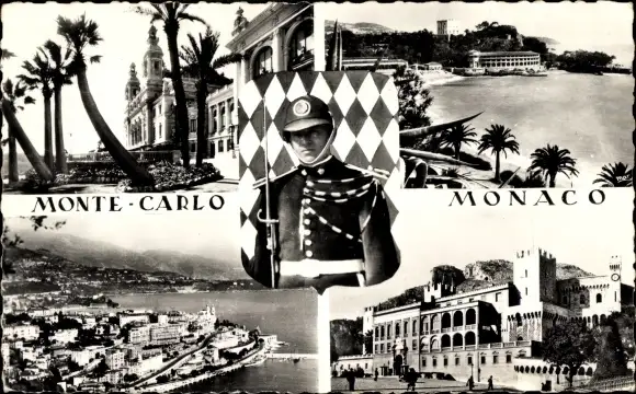 Ak Monte Carlo Monaco, Palmen, Ortsansicht, Wachsoldat, Gebäude